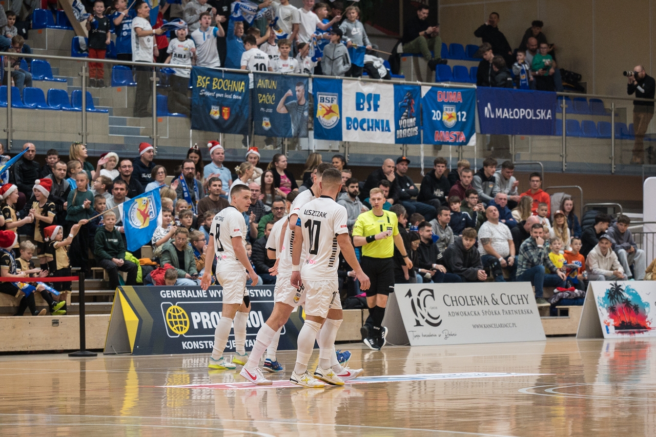 W domowym meczu 14. kolejki FOGO Futsal Ekstraklasy bocheńska drużyna pokonała AZS AZS UŚ Katowice 10:2. Był to ostatni mecz domowy w tym roku.