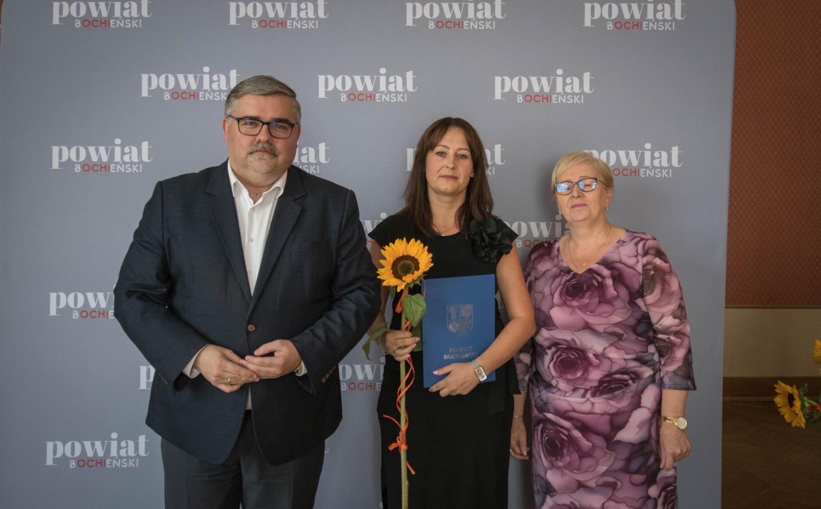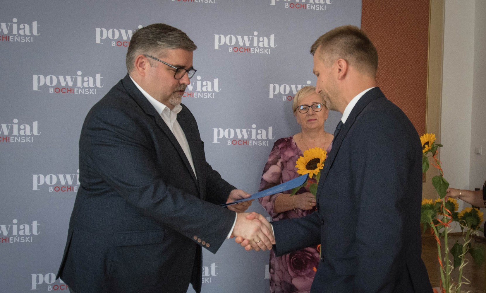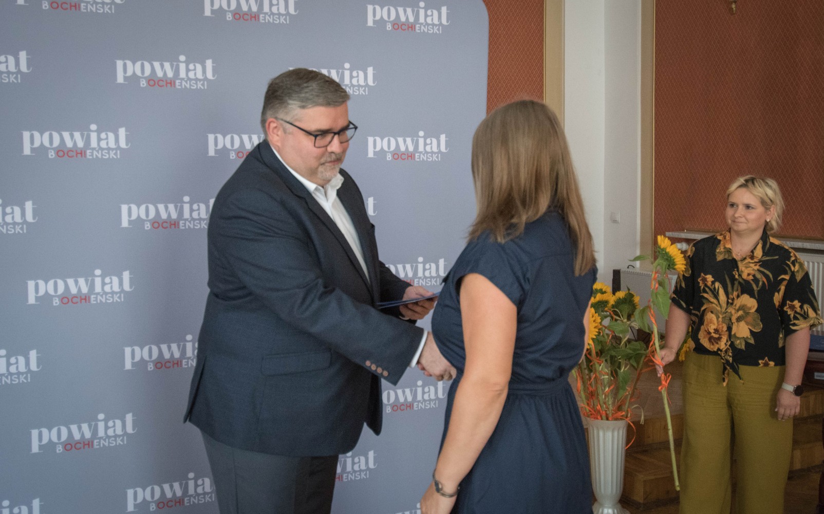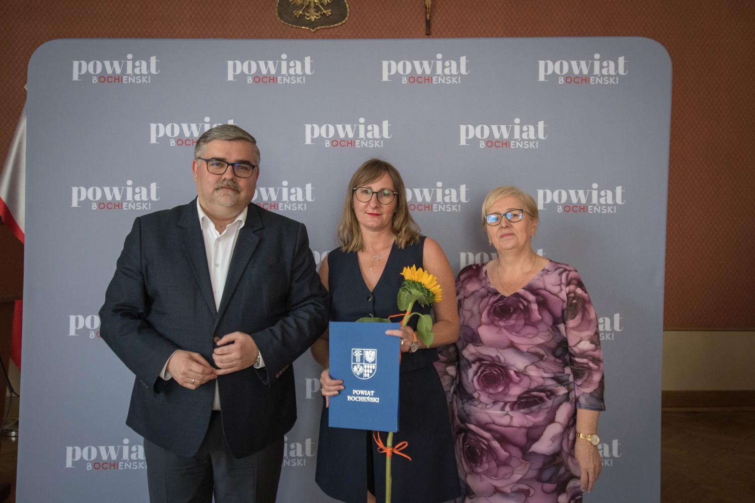 Podczas spotkania starosta wręczył także akty powołania na kolejną kadencję dyrektorom dwóch jednostek, w których przeprowadzono postępowania konkursowe Kinga Pałka w Specjalnym Ośrodku Szkolno-Wychowawczym w Bochni oraz Piotr Czekaj w Zespole Szkół nr 3 w Bochni.