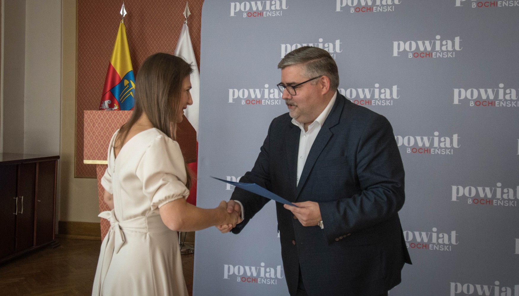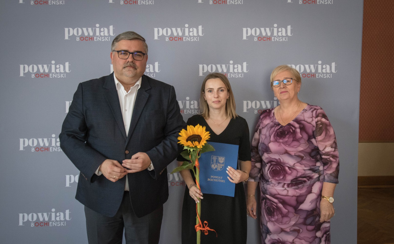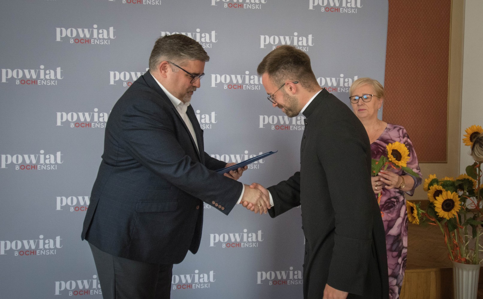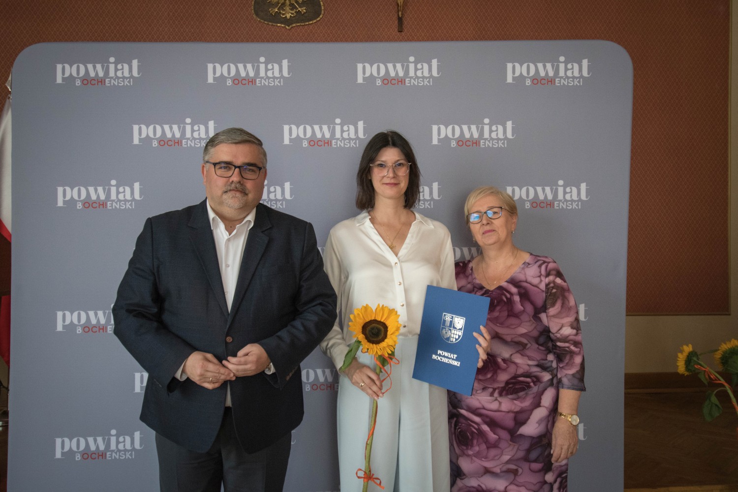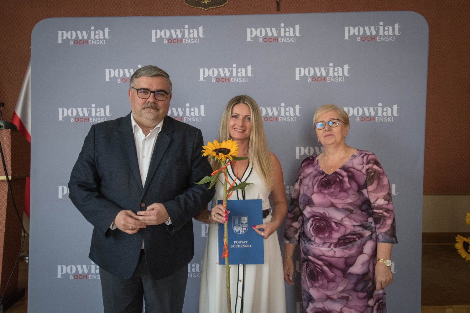 Podczas spotkania starosta wręczył także akty powołania na kolejną kadencję dyrektorom dwóch jednostek, w których przeprowadzono postępowania konkursowe Kinga Pałka w Specjalnym Ośrodku Szkolno-Wychowawczym w Bochni oraz Piotr Czekaj w Zespole Szkół nr 3 w Bochni.