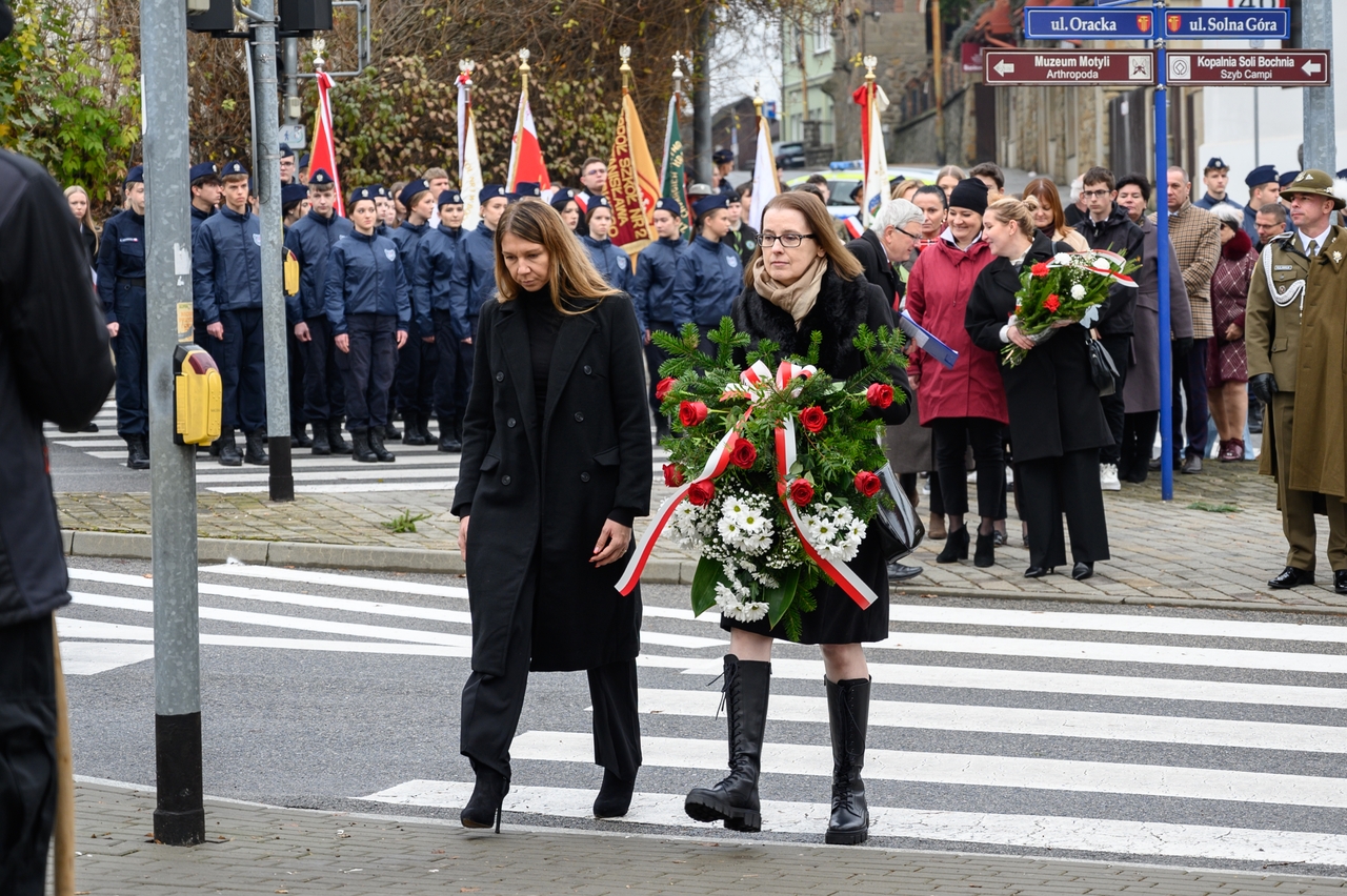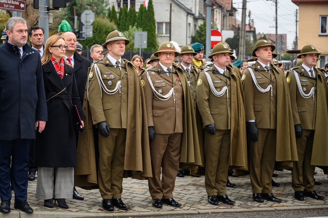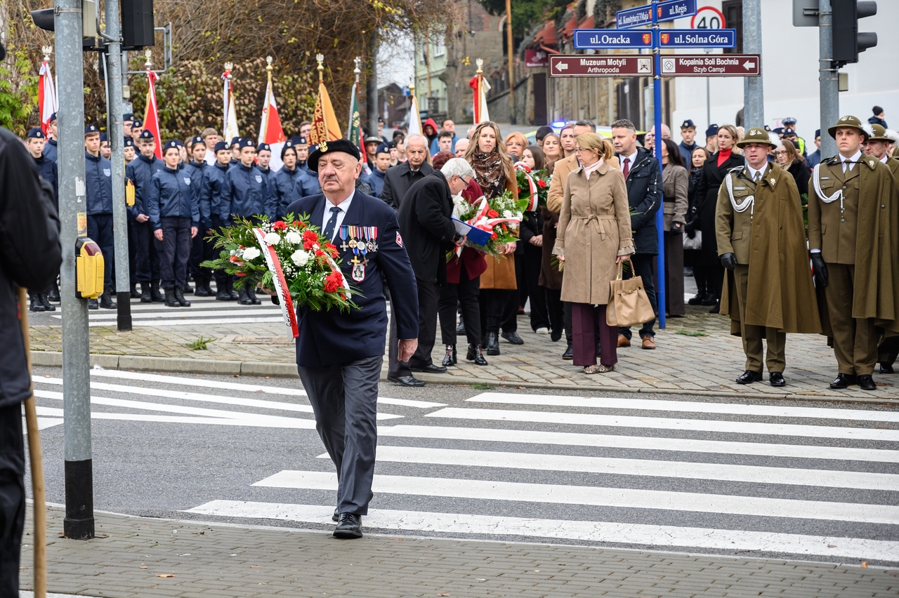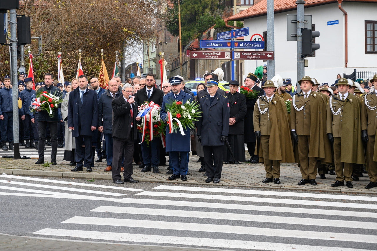 Gdy wspominamy tamte wydarzenia, nie możemy nie pamiętać, że dla Bochni i całej Bocheńszczyzny niepodległość przyszła prawie 2 tygodnie wcześniej – już 31 października członkowie Polskiej Organizacji Wojskowej i żołnierze – uczestnicy tajnego sprzysiężenia o nazwie „Wolność”, w sposób bezkrwawy przejęli władzę w mieście z rąk austriackich zaborców. Szybko zbudowano zręby administracji cywilnej i wojskowej, a symbolem tamtych dni jest kpt. Jerzy Dobrodzicki – patron 21 batalionu logistycznego z Rzeszowa, którego dowództwo, oficerów i żołnierzy mamy przyjemność gościć na dzisiejszej uroczystości.