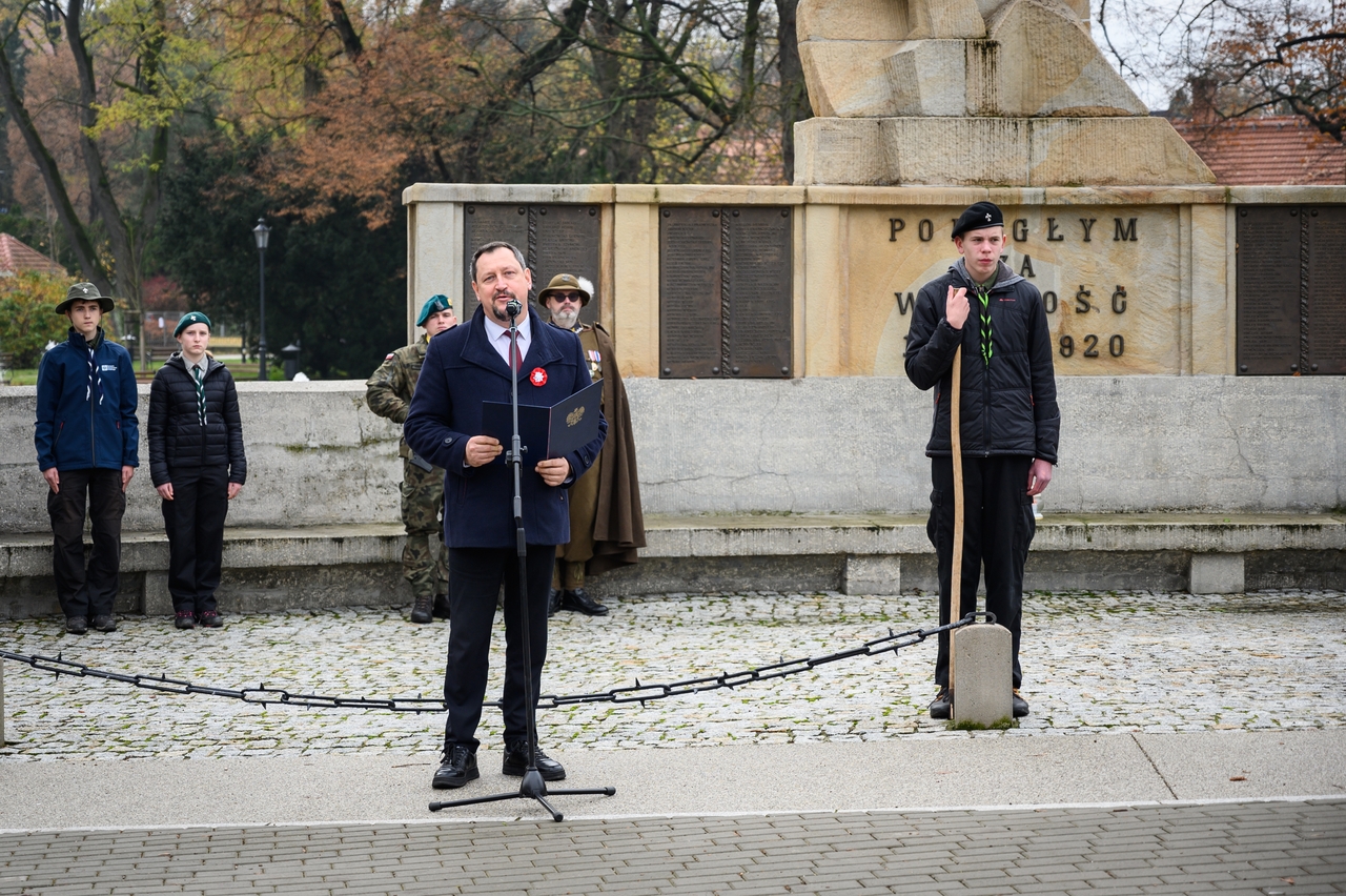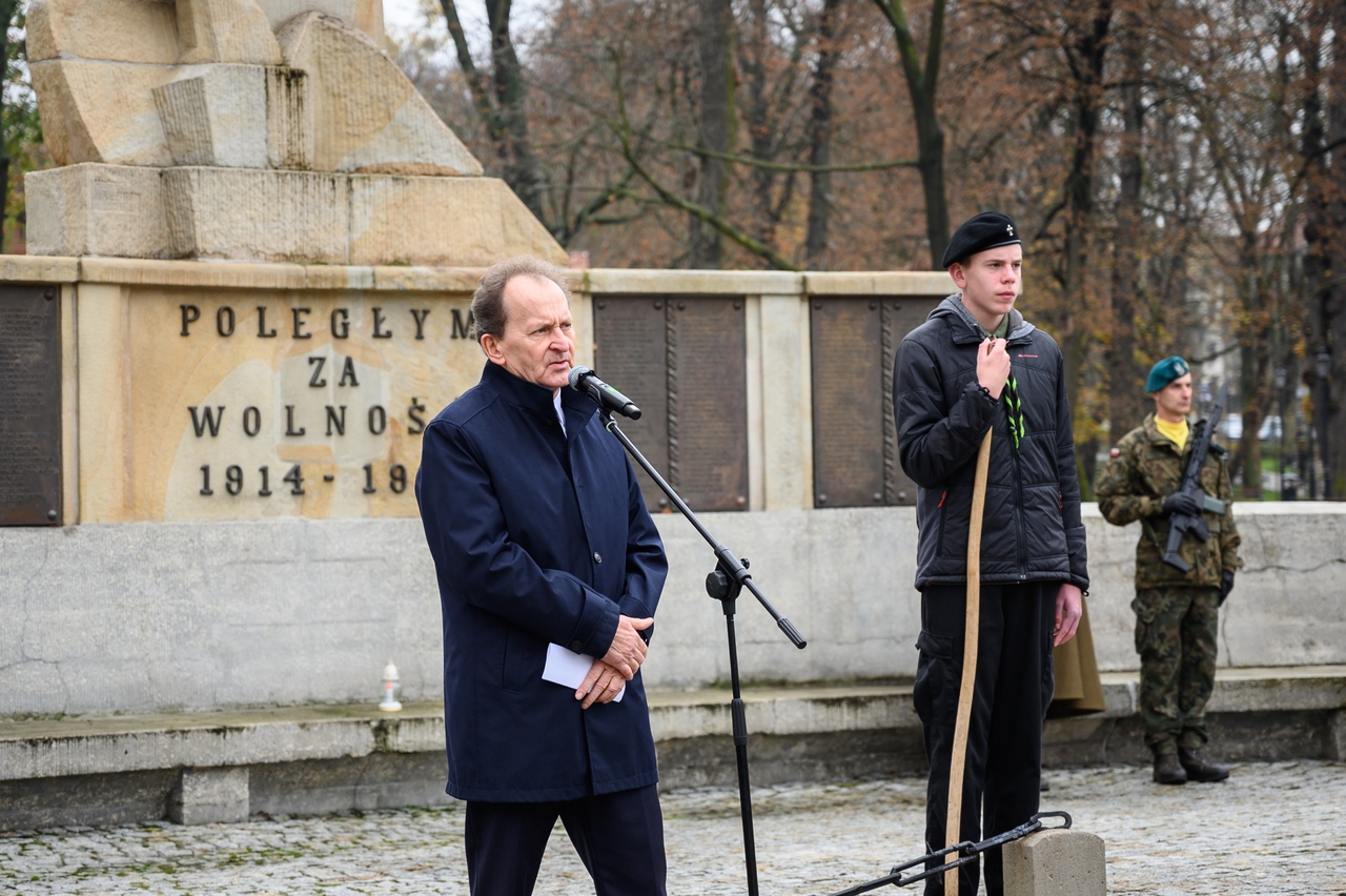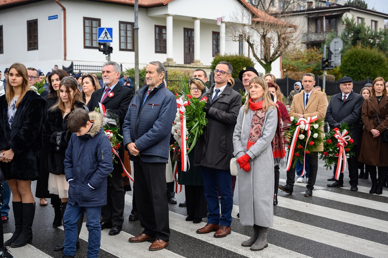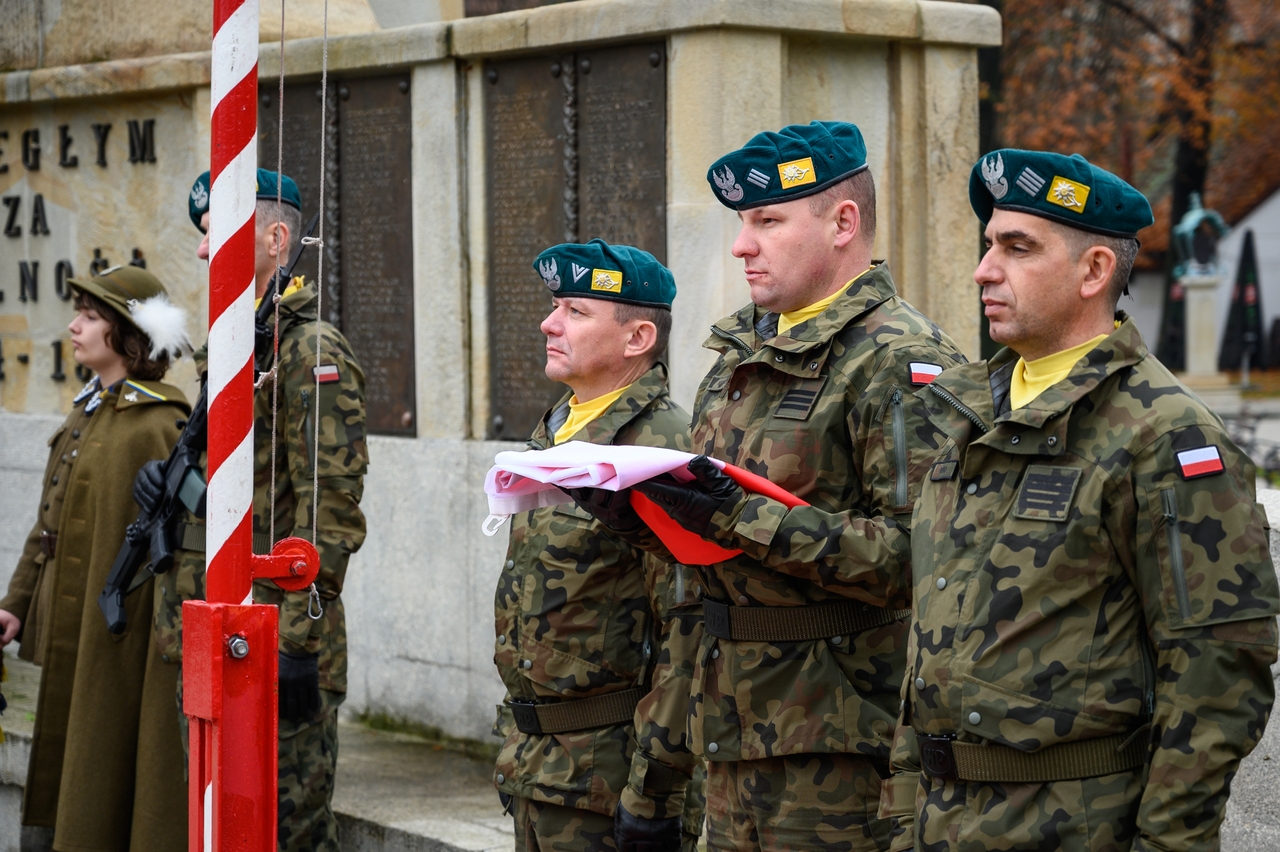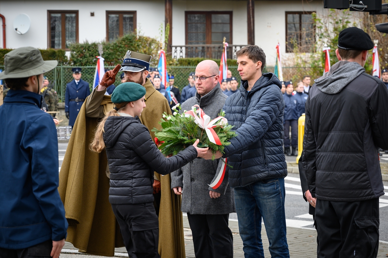 Gdy wspominamy tamte wydarzenia, nie możemy nie pamiętać, że dla Bochni i całej Bocheńszczyzny niepodległość przyszła prawie 2 tygodnie wcześniej – już 31 października członkowie Polskiej Organizacji Wojskowej i żołnierze – uczestnicy tajnego sprzysiężenia o nazwie „Wolność”, w sposób bezkrwawy przejęli władzę w mieście z rąk austriackich zaborców. Szybko zbudowano zręby administracji cywilnej i wojskowej, a symbolem tamtych dni jest kpt. Jerzy Dobrodzicki – patron 21 batalionu logistycznego z Rzeszowa, którego dowództwo, oficerów i żołnierzy mamy przyjemność gościć na dzisiejszej uroczystości.