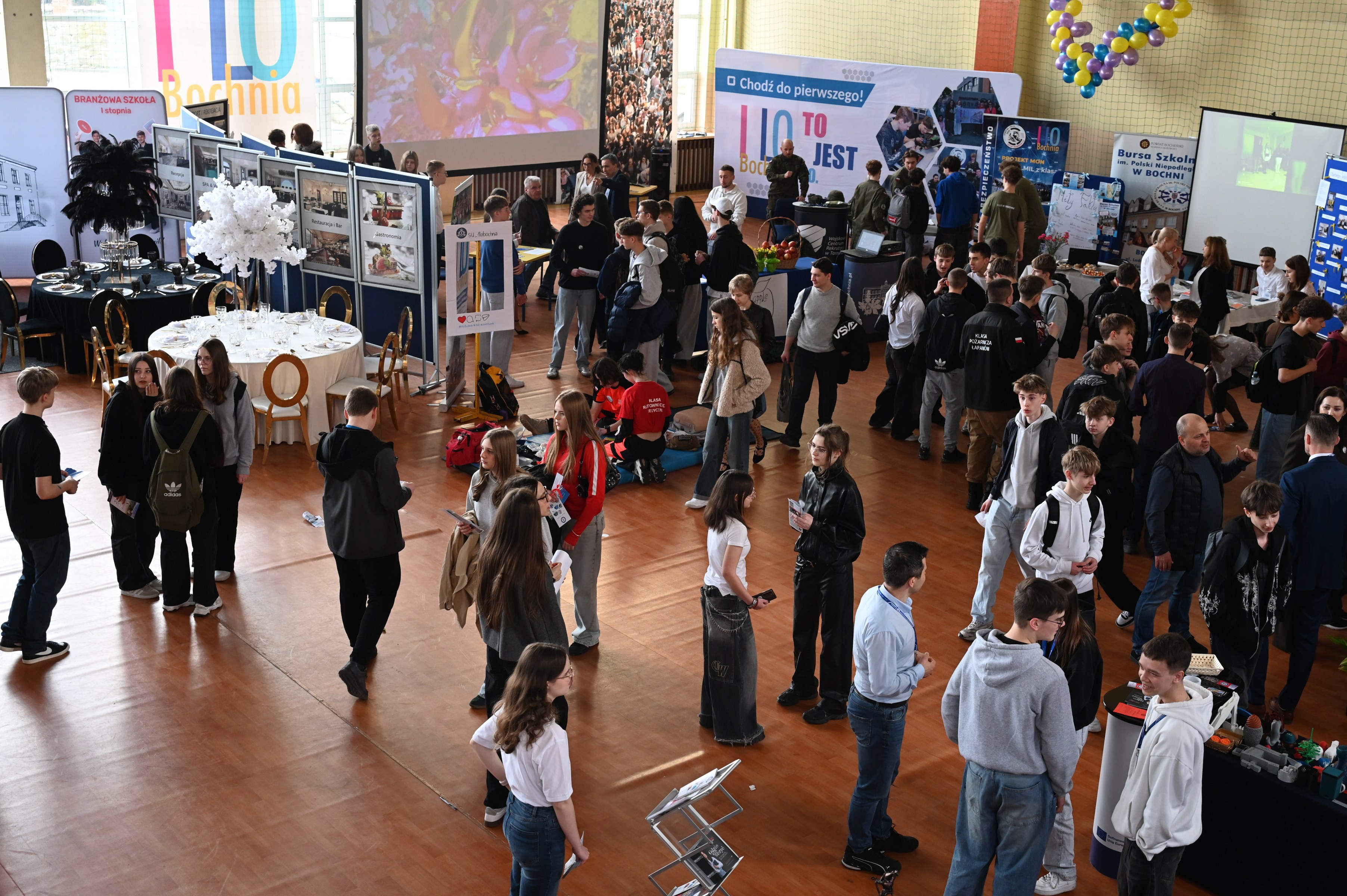 Wydarzenie cieszyło się dużym zainteresowaniem. Uczniowie aktywnie odwiedzali stoiska, zadawali pytania i zbierali materiały informacyjne, które pomogą im podjąć decyzję o dalszej ścieżce edukacyjnej.