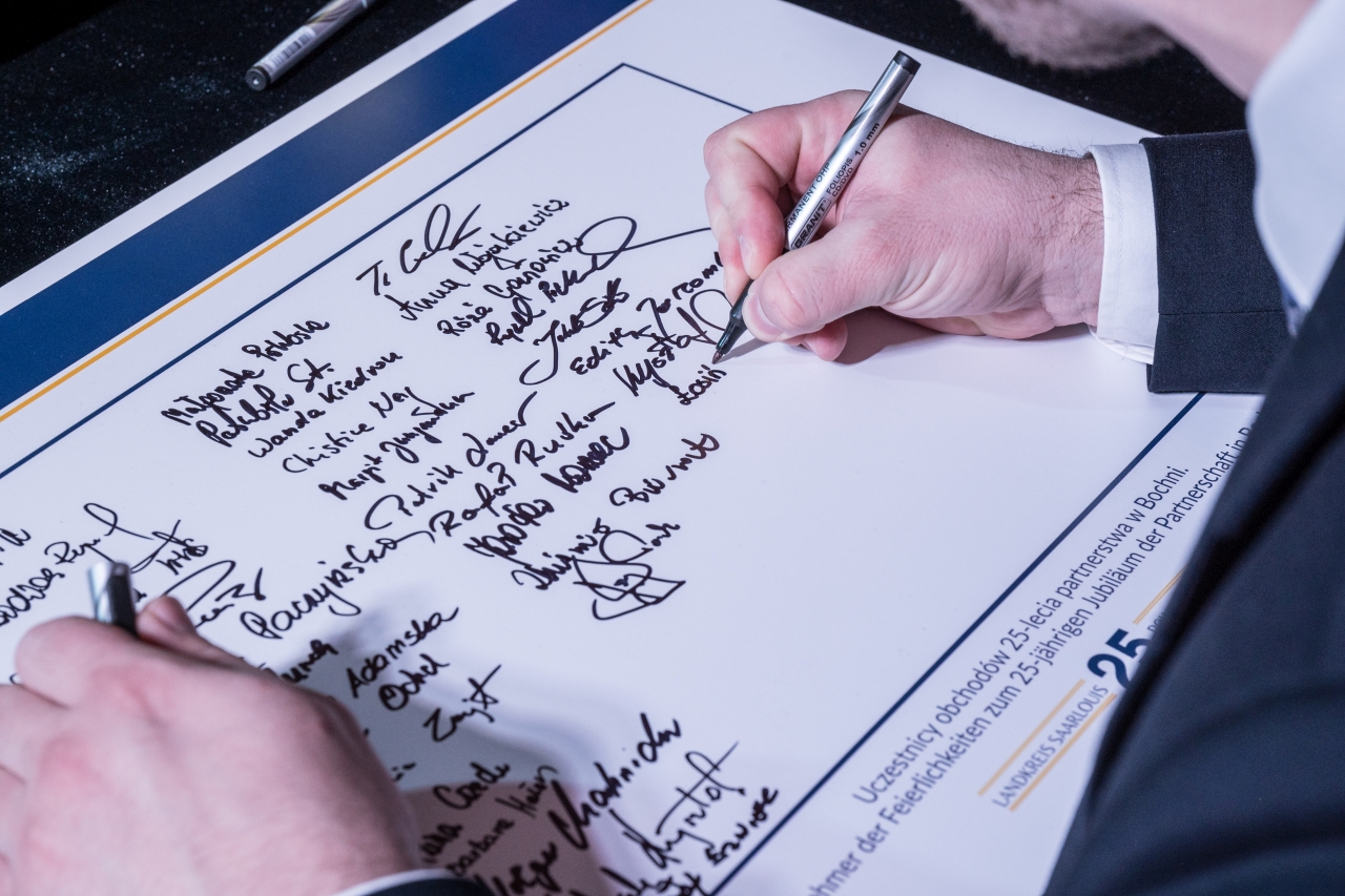 Podczas uroczystości przypomniano początki partnerstwa – podpisanie porozumienia 1 czerwca 2001 roku w Saarlouis przez starostów dr. Petera Wintera i śp. Ludwika Węgrzyna oraz kluczową rolę stowarzyszeń Saarlouis–Bochnia i Bochnia–Saarlouis w rozwijaniu relacji między społecznościami.
