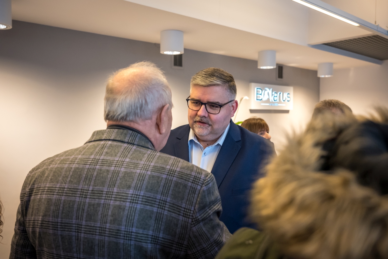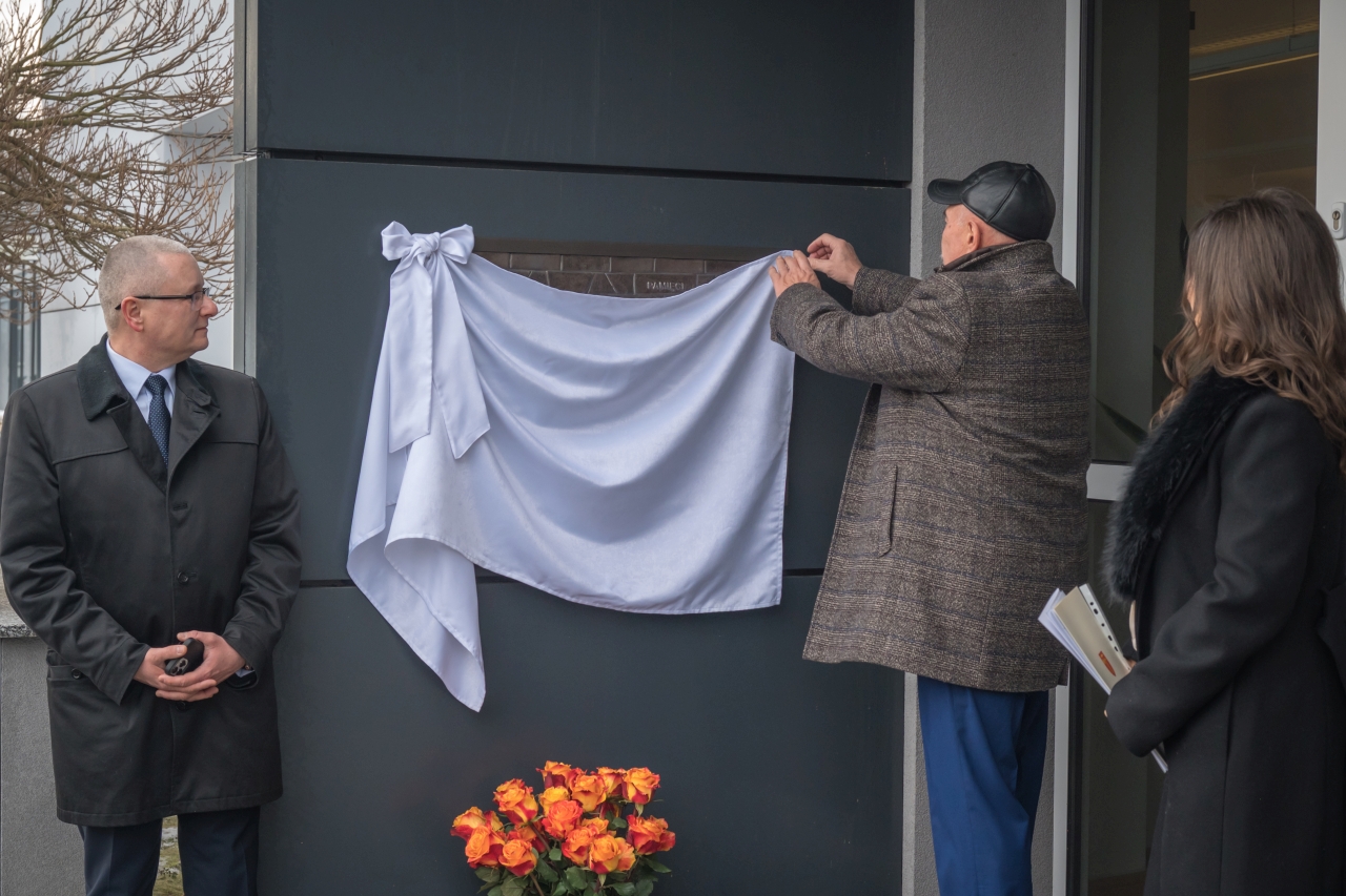 Uroczystego odsłonięcia tablicy dokonał Longin Węgrzyn, główny akcjonariusz BOLARUS S.A., w towarzystwie Magdaleny Węgrzyn, członkini Rady Nadzorczej, oraz Rafała Świerczka, prezesa spółki.