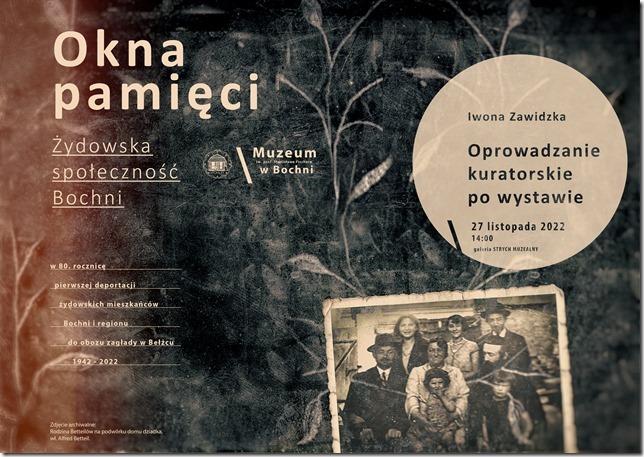 Muzeum im. prof. Stanisława Fischera w Bochni zaprasza w najbliższa niedzielę o godzinie 14:00 na oprowadzanie kuratorskie po czasowej wystawie Okna pamięci. O Żydowskiej społeczność Bochni.