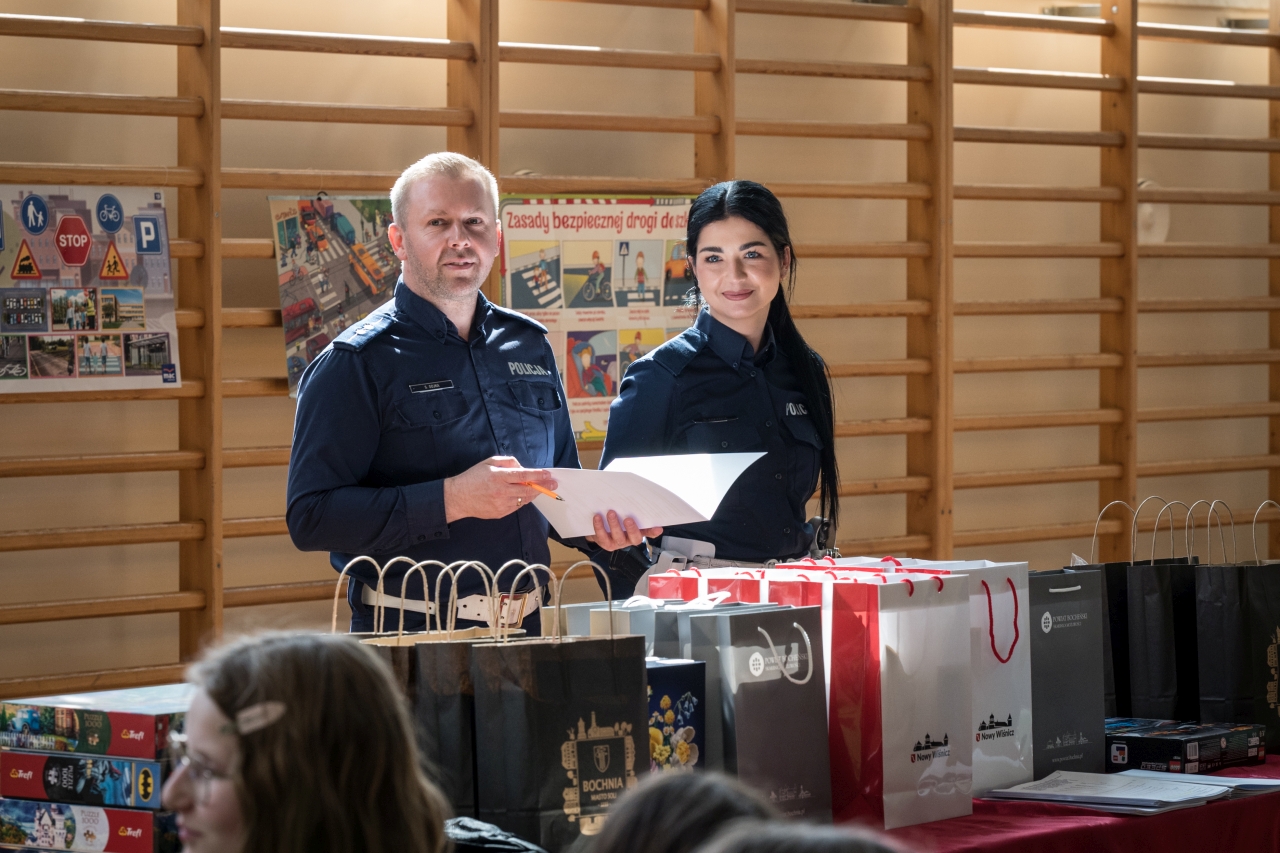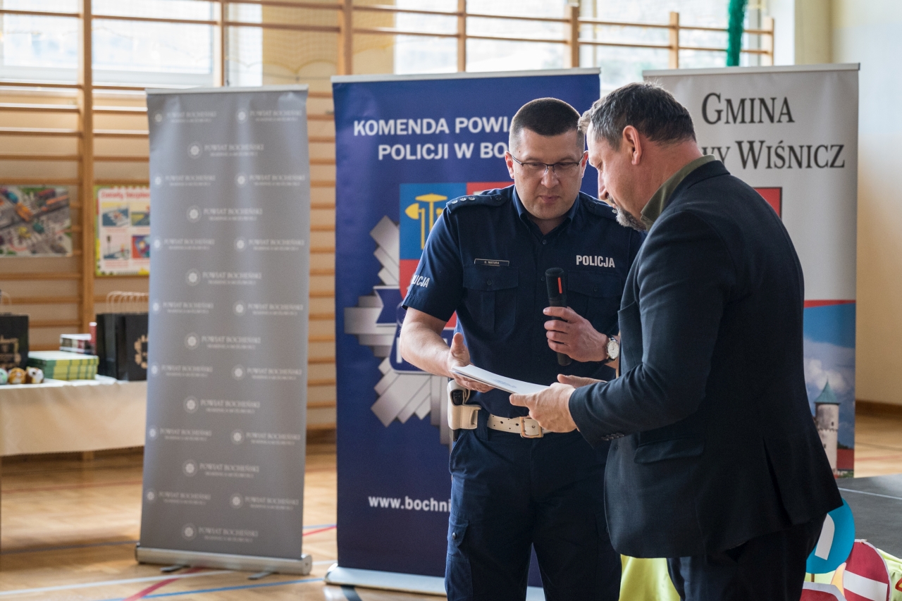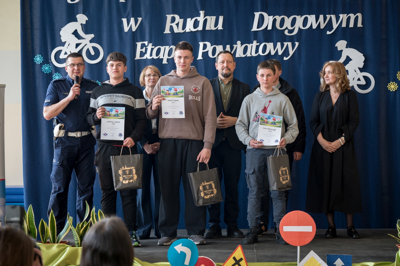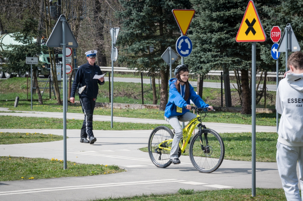 Nad prawidłowym przebiegiem finału czuwali sędzia główny oraz policjanci Wydziału Ruchu Drogowego Komendy Powiatowej Policji w Bochni. Funkcjonariusze oceniali uczestników oraz udzielali im praktycznych wskazówek dotyczących bezpiecznego poruszania się rowerem.