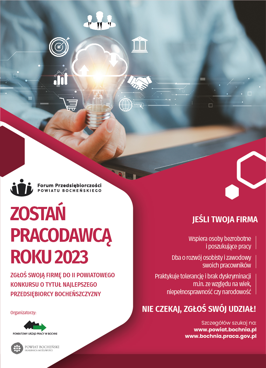 Rozstrzygnięcie konkursu oraz wręczenie nagród nastąpi podczas II Forum Przedsiębiorczości Powiatu Bocheńskiego.