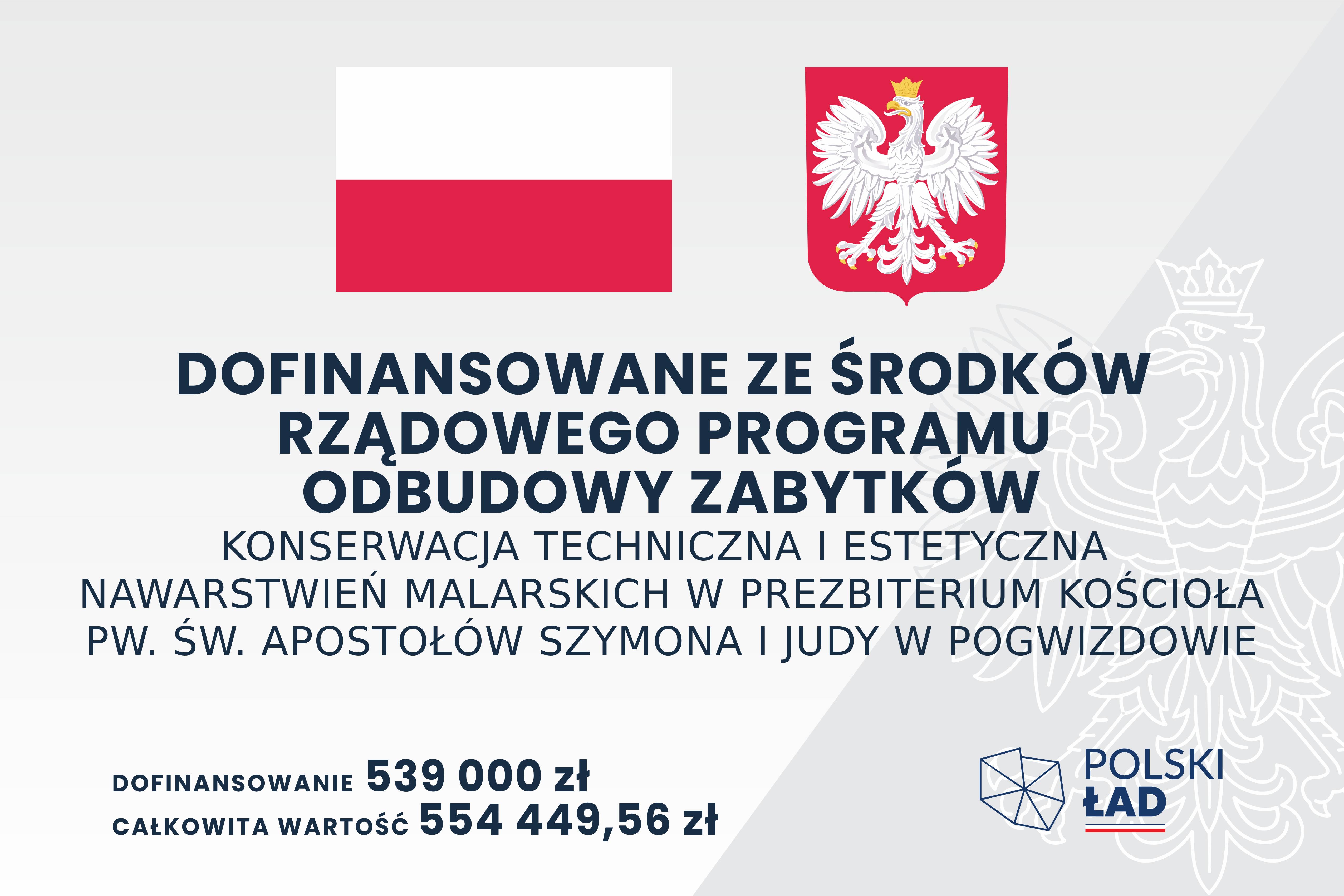 W ramach inwestycji przeprowadzono prace konserwatorsko-restauratorskie obejmujące nawarstwienia malarskie w prezbiterium zabytkowego kościoła pw. św. Apostołów Szymona i Judy Tadeusza w Pogwizdowie.