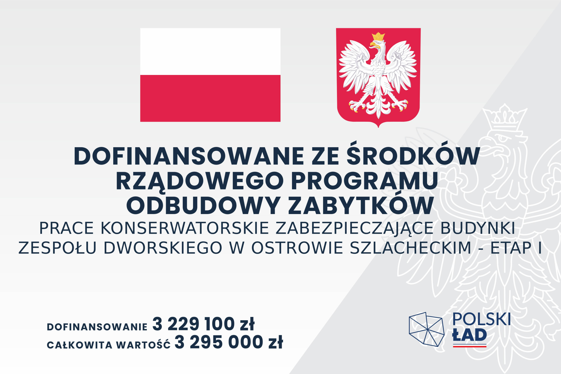 W ramach inwestycji przeprowadzono prace konserwatorskie i zabezpieczające przy budynkach wchodzących w skład Zespołu Dworskiego w Ostrowie Szlacheckim – etap I, obejmujących: stajnię dworską, dom ogrodnika i oficynę dworską. Budynki stanowią cenny przykład dawnej zabudowy dworskiej, a ze względu na znaczne zaniedbania powstałe w drugiej połowie XX wieku, konieczne było podjęcie pilnych działań konserwatorskich w celu zabezpieczenia substancji zabytkowej i zahamowania procesów degradacyjnych.