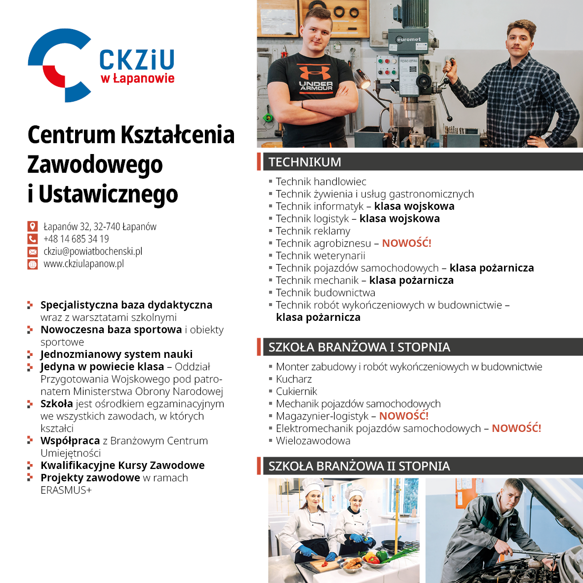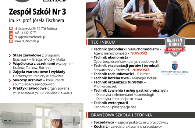 Zespół Szkół nr 2 w Bochni Zespół Szkół nr 3 w Bochni Centrum Kształcenia Zawodowego i Ustawicznego w Łapanowie